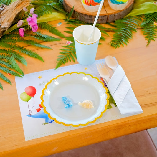 Pappteller hellblau mit goldenem Rand 6 Stück